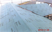 このたび、工事のご依頼を頂きましたお住まいは、築約40年、建坪40坪の木造2階建ての建物で、今から約17〜18年前より、浴室、キッチン、居間等の室内のリフォームや外壁の塗装工事等でお世話になってまいりました。そして今回は、昨秋の大型台風により、2階の屋根瓦がハガレ落下したため見て欲しいとのご依頼を頂き、調査に伺いましたところ、落下した瓦は棟瓦の数枚程度で、火災保険を利用して修復可能な比較的に軽微な被害でした。しかし、築年数も40年を超えておりましたので、念のため、屋根瓦を数枚取り払い下地の状態を拝見しましたところ、予想通り、ほぼ全体にわたり防水紙が切れ、すぐにでも雨漏りが発生する状況でした。